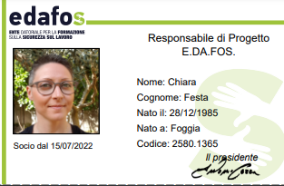 Chiara Festa, CSP-CSE, RSPP, Formatrice Sicurezza, Consulente Sicurezza, Consulente-Progettista-Auditor di Sistemi di Gestione, Rappresentante del Datore di Lavoro per attività in Spazi Confinati.